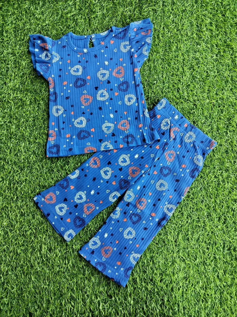 Adorable frill-sleeve top paired with comfy palazzo pants for an effortlessly elegant look.