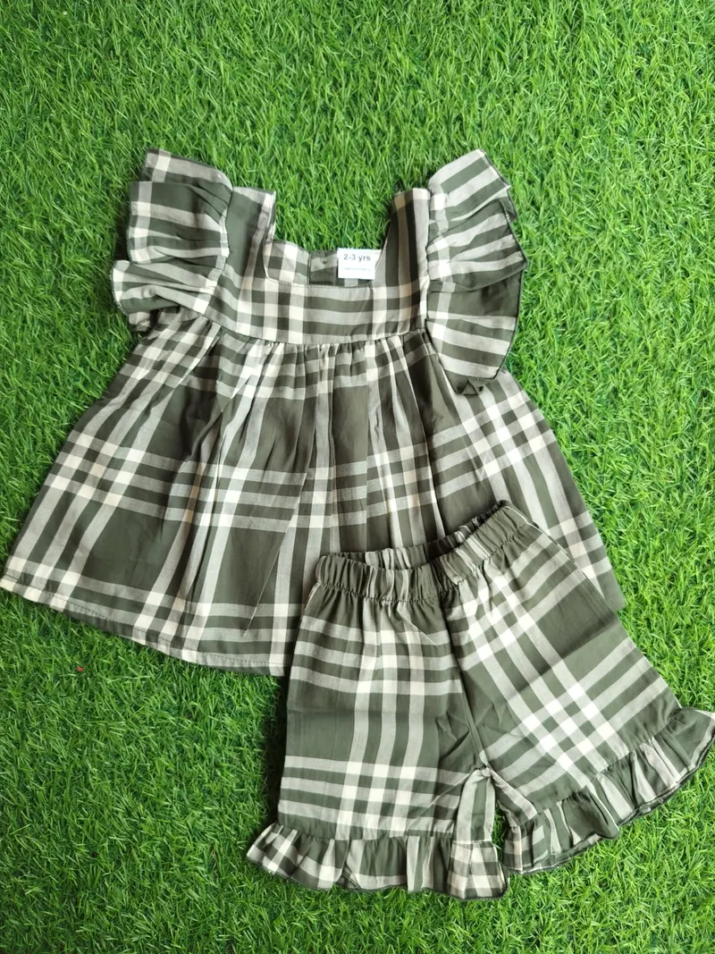 Premium cotton co-ord set with frilly sleeves and ruffle-edged shorts for a cute, breezy look.