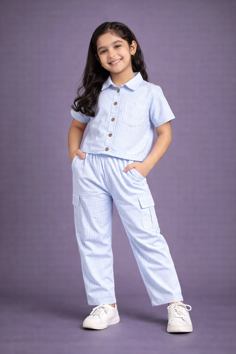 Cute and comfy designer cotton co-ord set with a sweet collar top and front buttons.