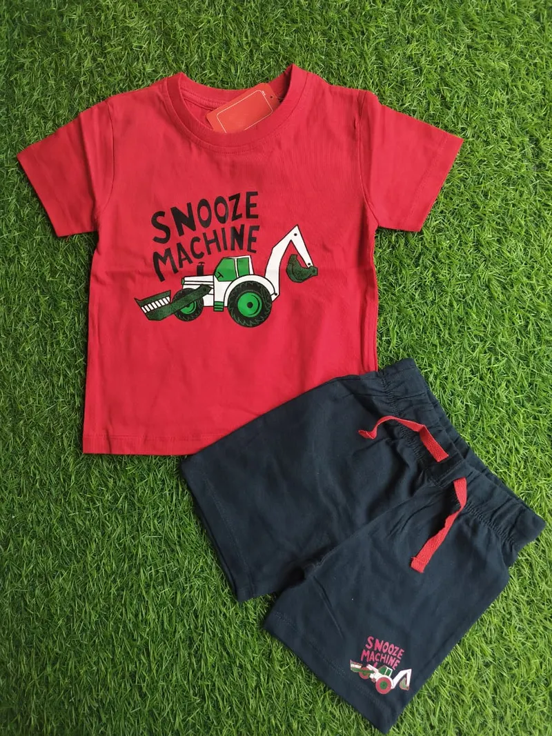 Perfect for ages 3 to 24 months, it features a fun graphic tee and stretchy shorts — ideal for everyday play and cuddles.